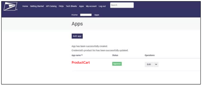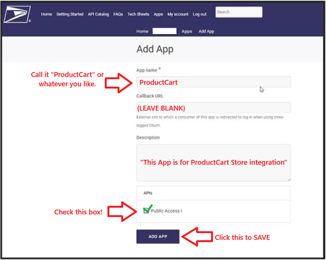 After logging into the USPS Developers Portal with your USPS credentials, you can make an app which is simply creating the set of keys to use for your ProductCart USPS integration so it can communicate securely to your USPS account.